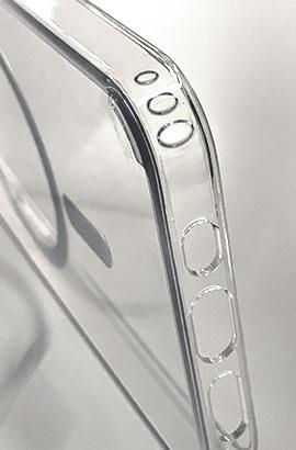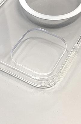 TPU da 1.5 mm compatibile con tecnologia MagSafe, flessibile con alta resistenza alle abrasioni, avvolge perfettamente il dispositivo, offre un ottima protezione contro usura e cadute accidentali. Elimina l'effetto acqua "bolle" posteriore nei dispositivi lucidi grazie ad una micro-puntinatura interna. Dotata di 4 sporgenze sul retro, posizionate agli angoli, per garantire una maggior protezione al modulo camere.